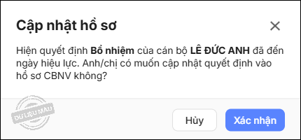 Khi đơn vị phát sinh CBNV có quyết định đến ngày hiệu lực nhưng chưa được cập nhật vào hồ sơ, phần mềm hiển thị thông báo tại các màn hình danh sách quyết định tương ứng: