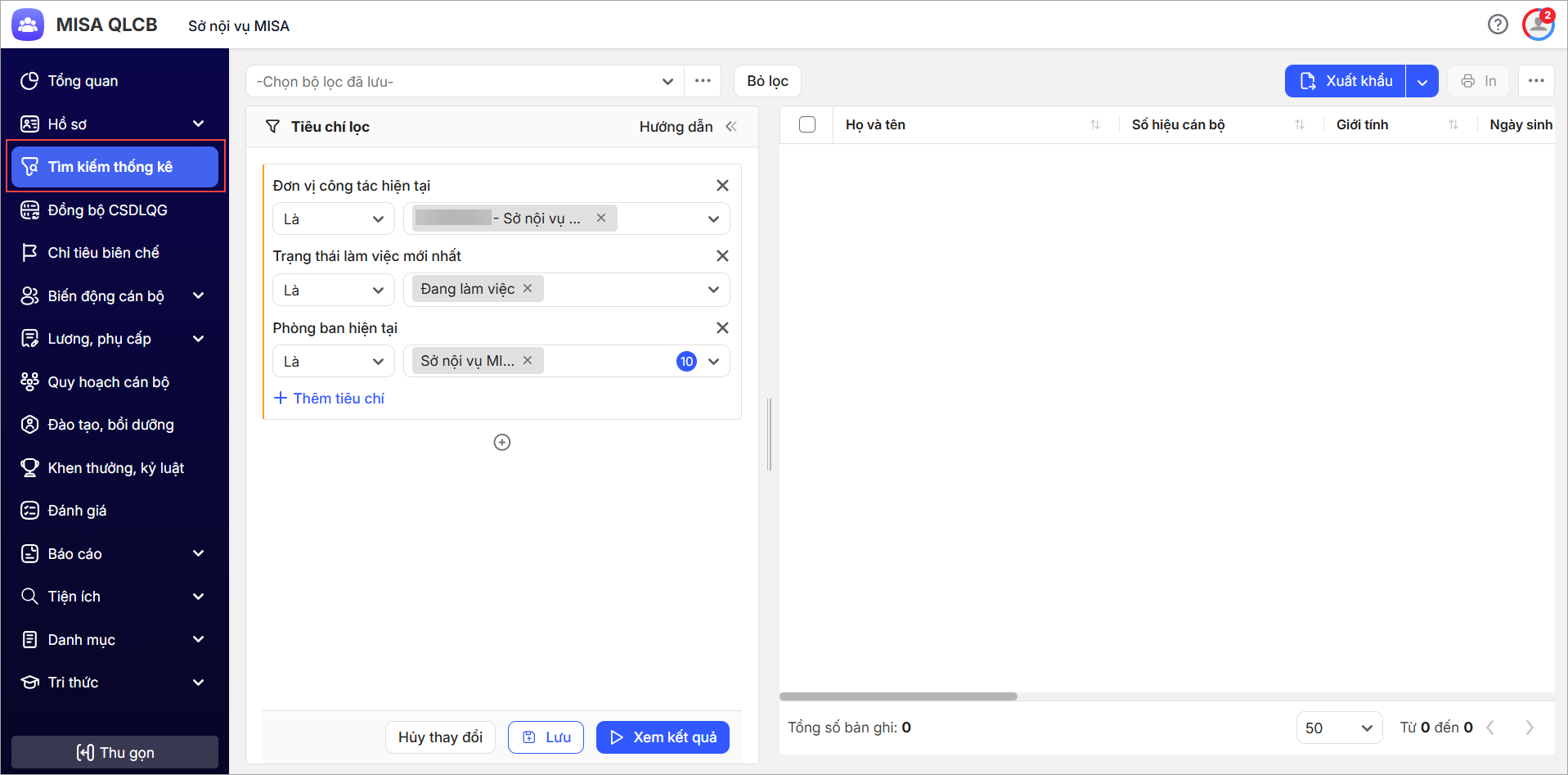 Tại menu Tìm kiếm thống kê