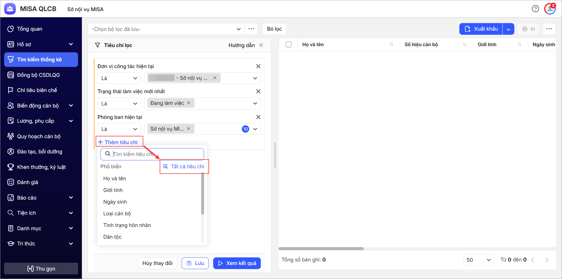 - Thêm tiêu chí lọc