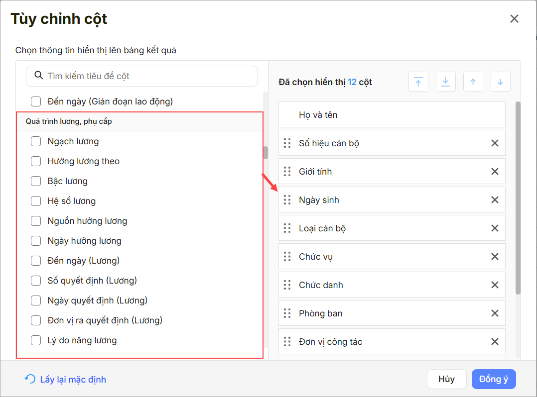 - Chi tiết quá trình lương: cột hệ số lương