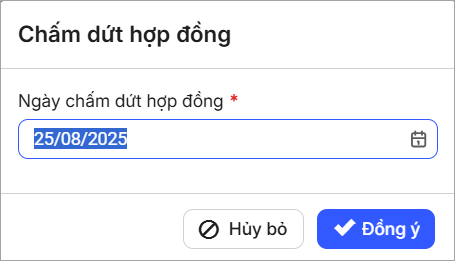 - Nhâp lại Ngày chấm dứt hợp đồng và nhấn Đồng ý để xác nhận muốn chấm dứt hợp đồng với CBCCVC này.