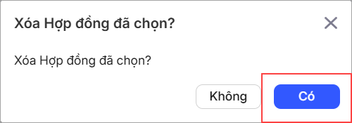 - Nhấn Có để xác nhận muốn xóa hợp đồng.