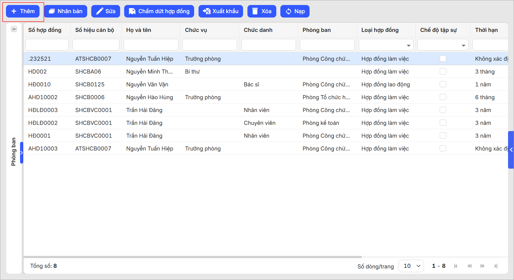2. Nhấn Thêm để thêm mới hợp đồng.