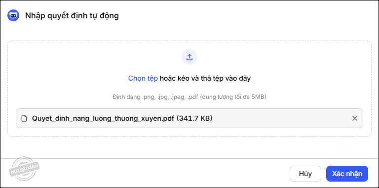 – Nhấn Chọn tệp hoặc kéo file quyết định vào ô. Nhấn Xác nhận.