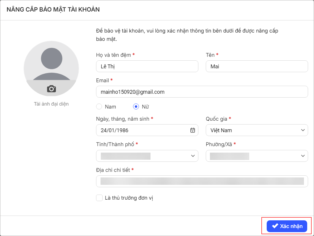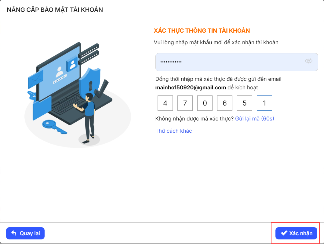 - Xác nhận thông tin để nâng cấp bảo mật tài khoản.