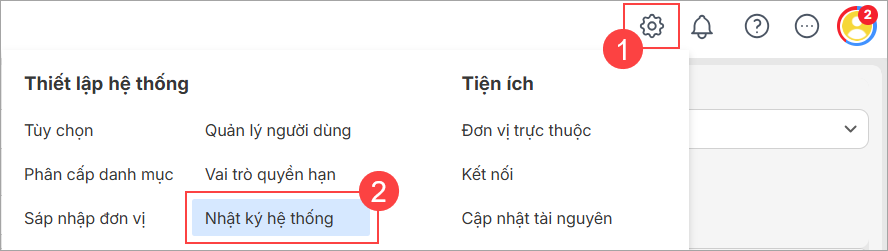 1. Vào Thiết lập hệ thống\Nhật ký hệ thống.